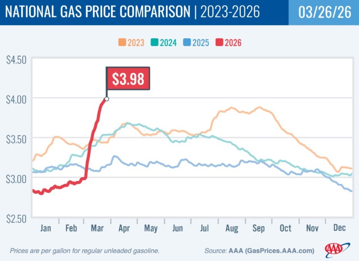 Gas prices are now up +$1.00/gallon since the Iran War began with mortgage rates nearing 6.50%, a 7-month high. At the current pace, we could see gas prices at $4.50+/gallon and 7% mortgages as soon as next month.